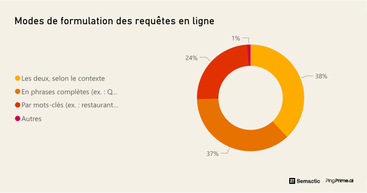 Nearly 4 out of 10 internet users also use queries in the form of complete sentences in a dialogical logic, and 1 in 2 turns to voice search—especially at home or to speed up the process.