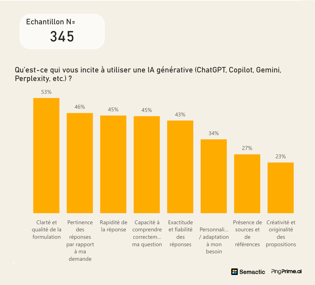 Saving time remains the main motivation, followed by clarity of answers and immediate relevance.